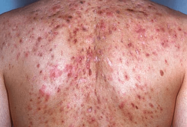 Acne conglobata is a rare but severe form of acne. It’s interconnected nodules, cysts and abscesses that can cause significant scarring. It usually occurs on the back, buttocks, chest and upper arms. Treatment requires strong medication like isotretinoin or corticosteroids. See a doctor for this type of acne.